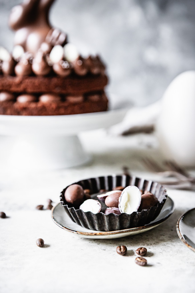 Den Kaffeelikör könnt ihr nach Geschmack auch durch Vanillelikör oder Baileys ersetzen. Wenn ihr das Törtchen ohne Alkohol gestalten möchtet, lasst ihn einfach ganz weg. Viel Spaß beim Backen und ein wunderbares Osterfest.