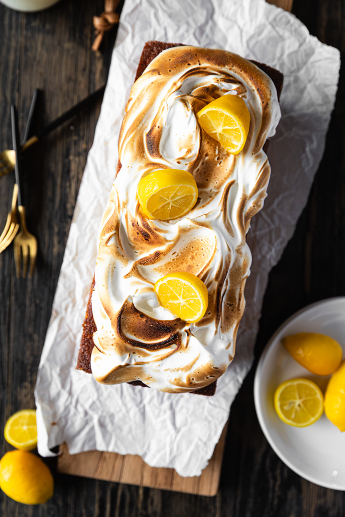Das luftige Baiser-Topping macht aus einem klassischen Kastenkuchen ein echtes Highlight. Außen zart karamellisiert, innen weich und fluffig, passt es perfekt zur frischen Säure des Kuchens. Mit einem Küchenbrenner ist das in wenigen Minuten erledigt und sorgt sofort für eine kleine „Wow-Optik“.