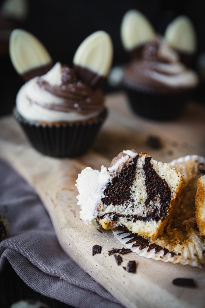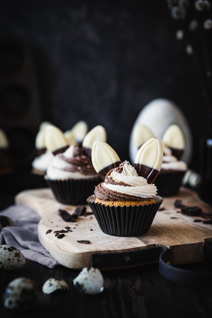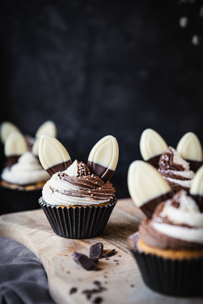 Zu Ostern dürfen Cupcakes auch mal Öhrchen haben, oder? Ich habe heute süße Cupcakes im Schwarz-Weiß-Look dabei, die direkt zu euch auf die Ostertafel hoppeln.