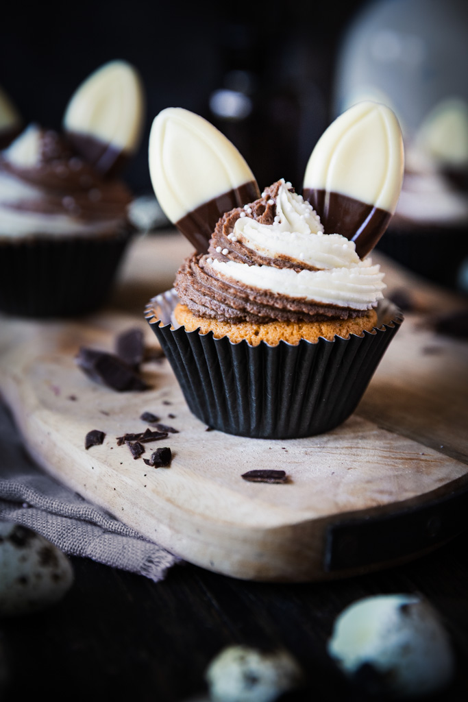 Diese Oster-Cupcakes verbinden einen saftigen Marmorteig mit zwei feinen Cremes: einer hellen Vanille-Mascarpone-Creme und einer dunklen Schoko-Creme. Die Kombination aus zarter Süße, cremiger Textur und schokoladigen Akzenten macht sie zu einem besonderen Gebäck für die Feiertage.