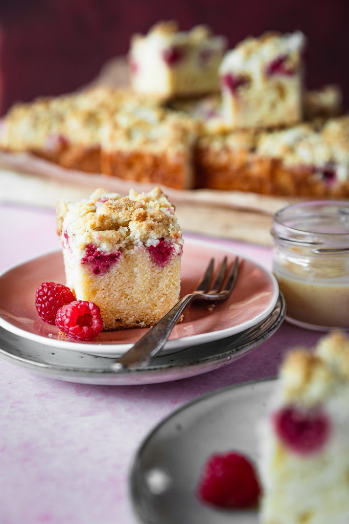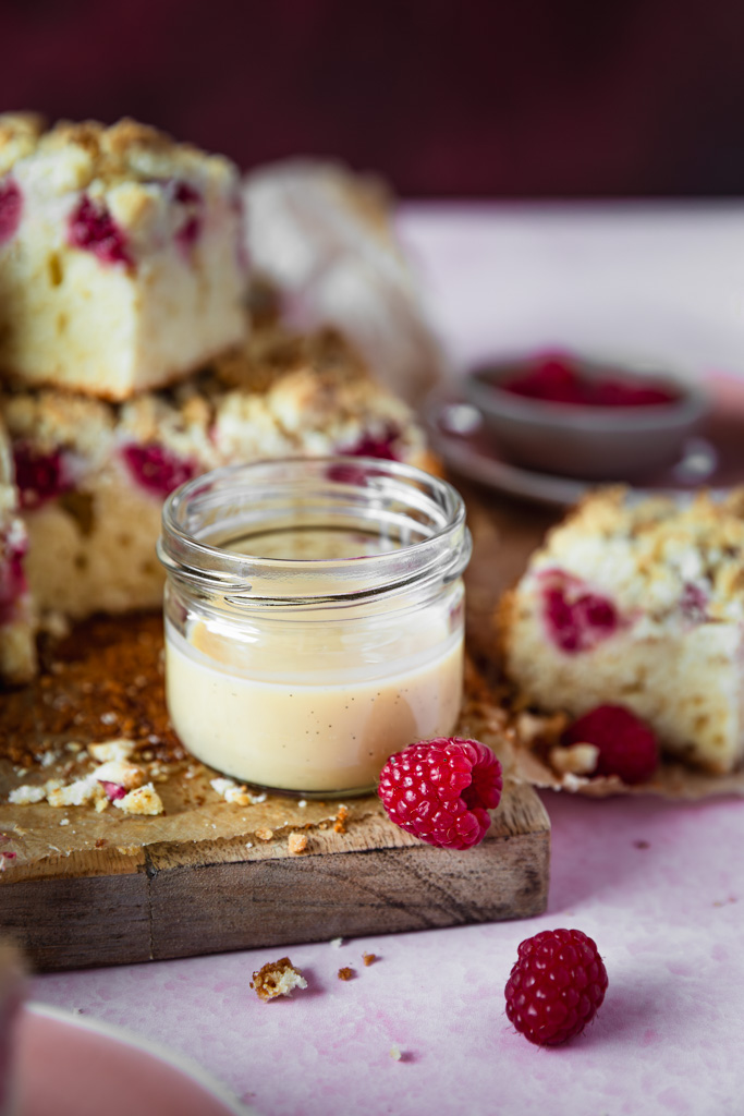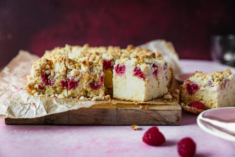 Dieser Himbeer-Streuselkuchen mit Eierlikör verbindet fruchtige Frische mit einem feinen, leicht vanilligen Aroma. Saftiger Rührteig trifft auf frische Himbeeren und knusprige Streusel – und bekommt durch den Eierlikör eine besonders runde, aromatische Note.