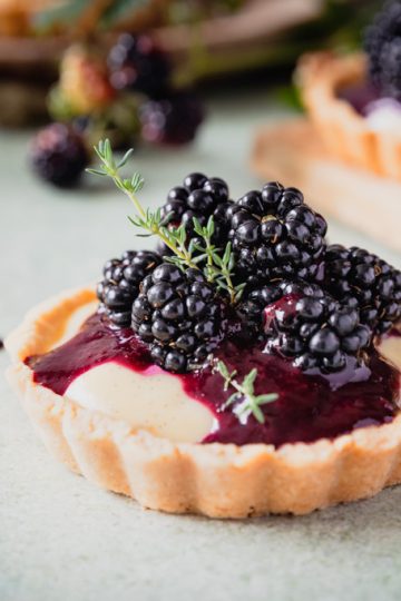 Beeren-Tarte mit Brombeer-Curd und Haselnüssen